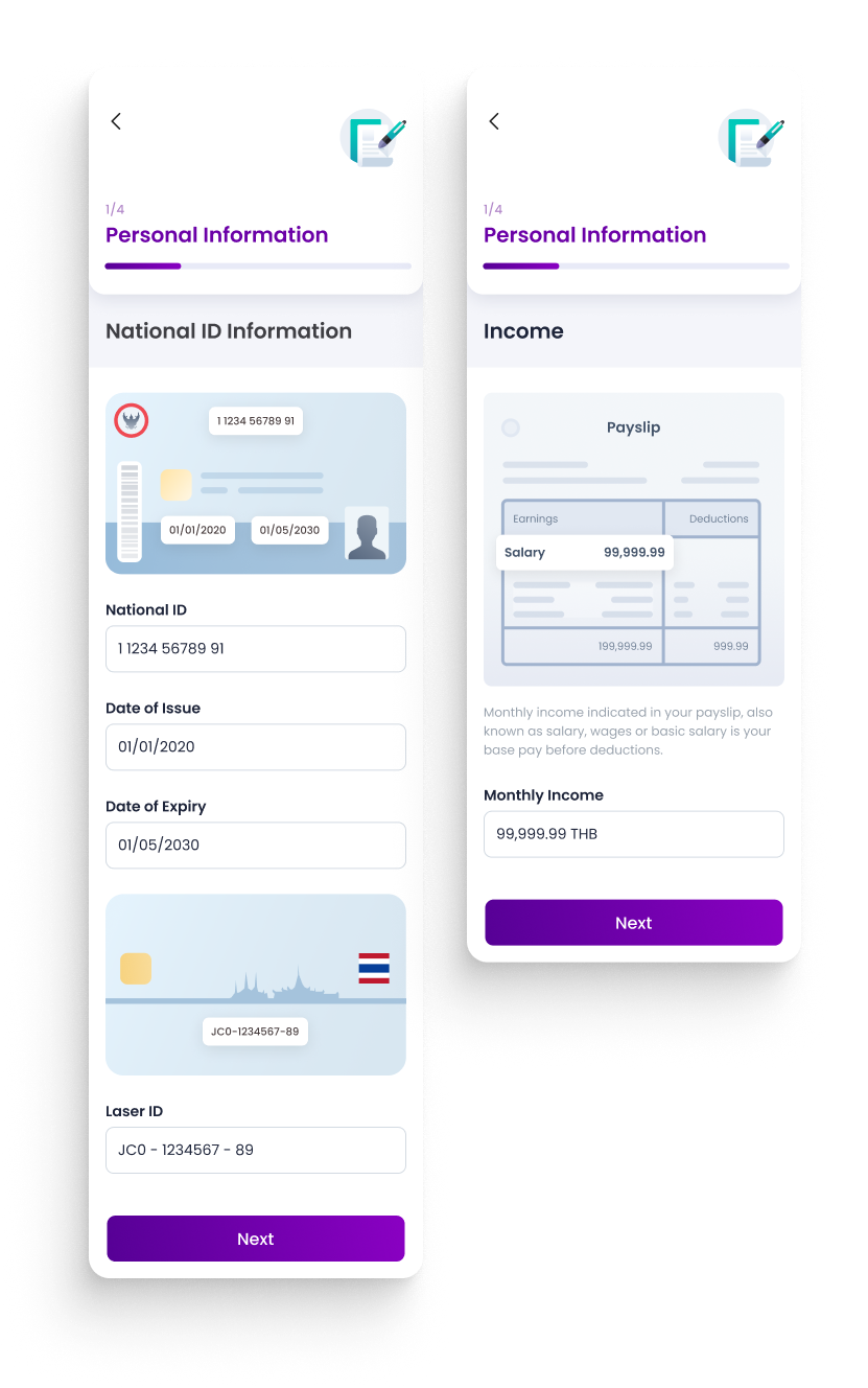 User experience and interface design for the leading financial institution to digitize the lending experience in Thailand.