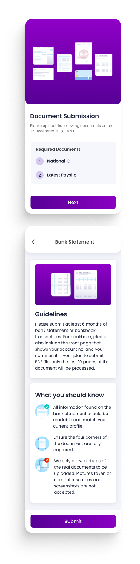 Usually, the users are required to input their financial information and submit multiple documents during the loan application process.