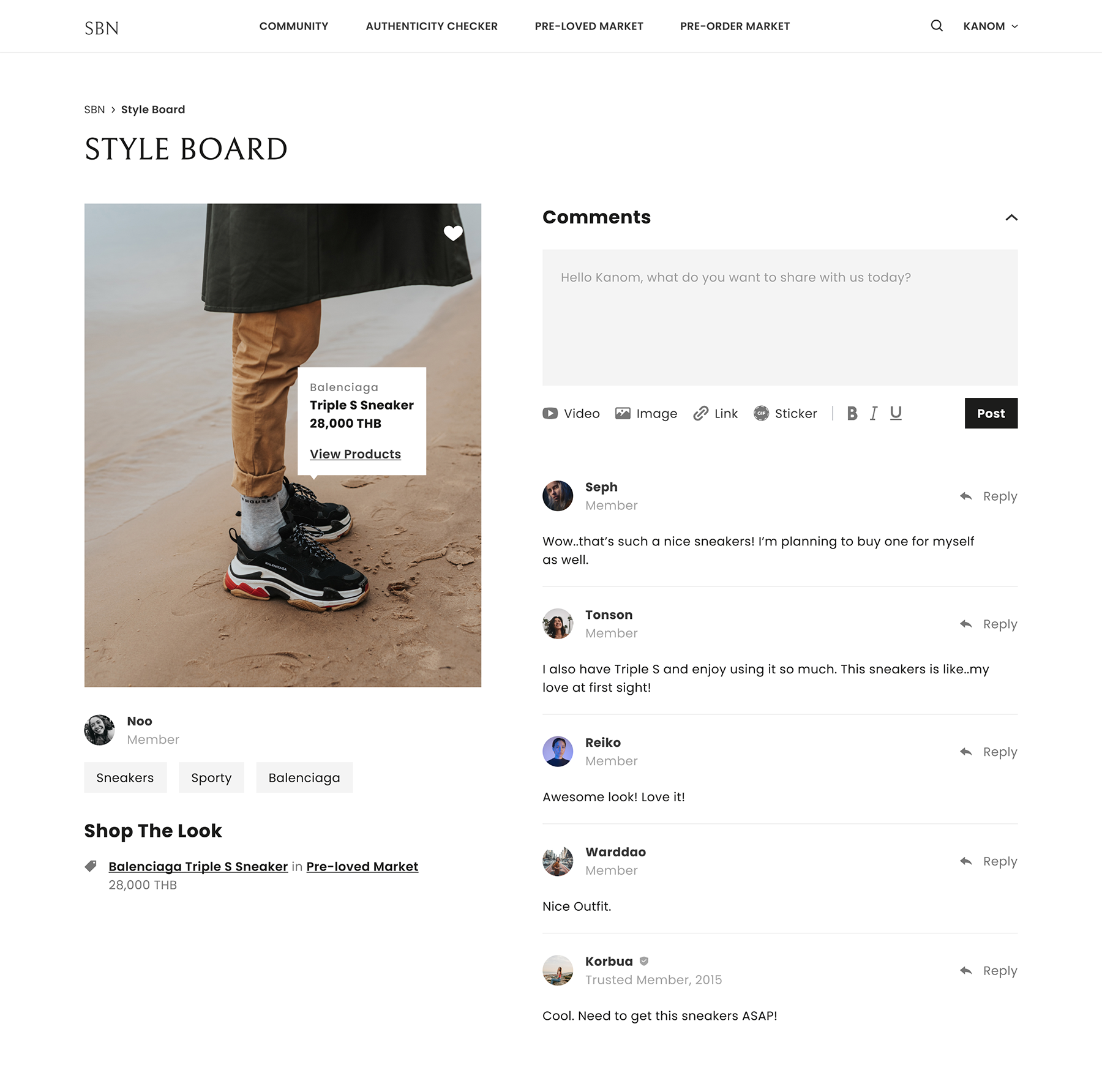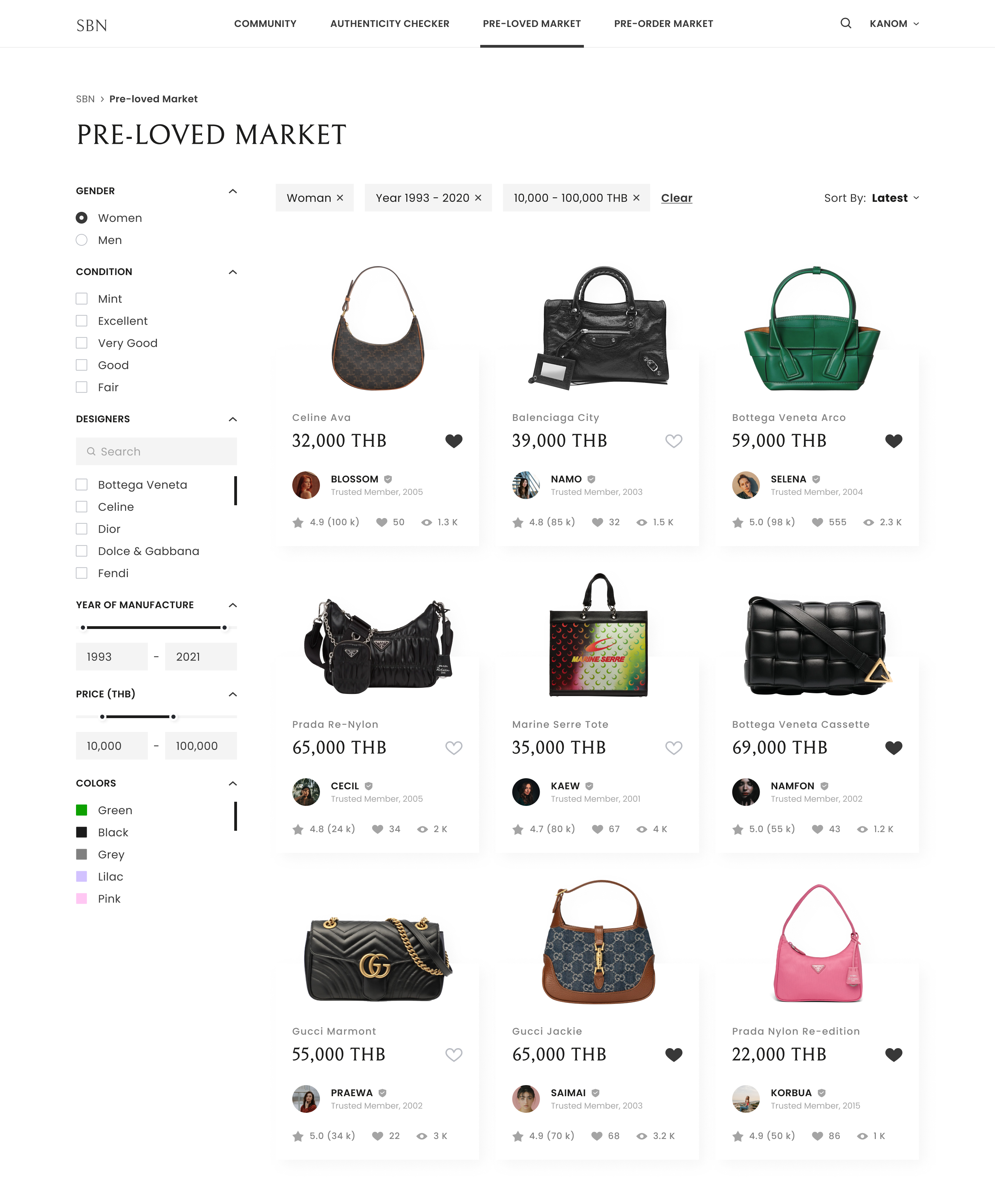 SBN is Thailand's largest designer's brand community where the members share, trade, and pre-order luxury products. The platform receives high credibility ranking, as the members are required to undertake several verification processes before they can become authorised sellers in the community.