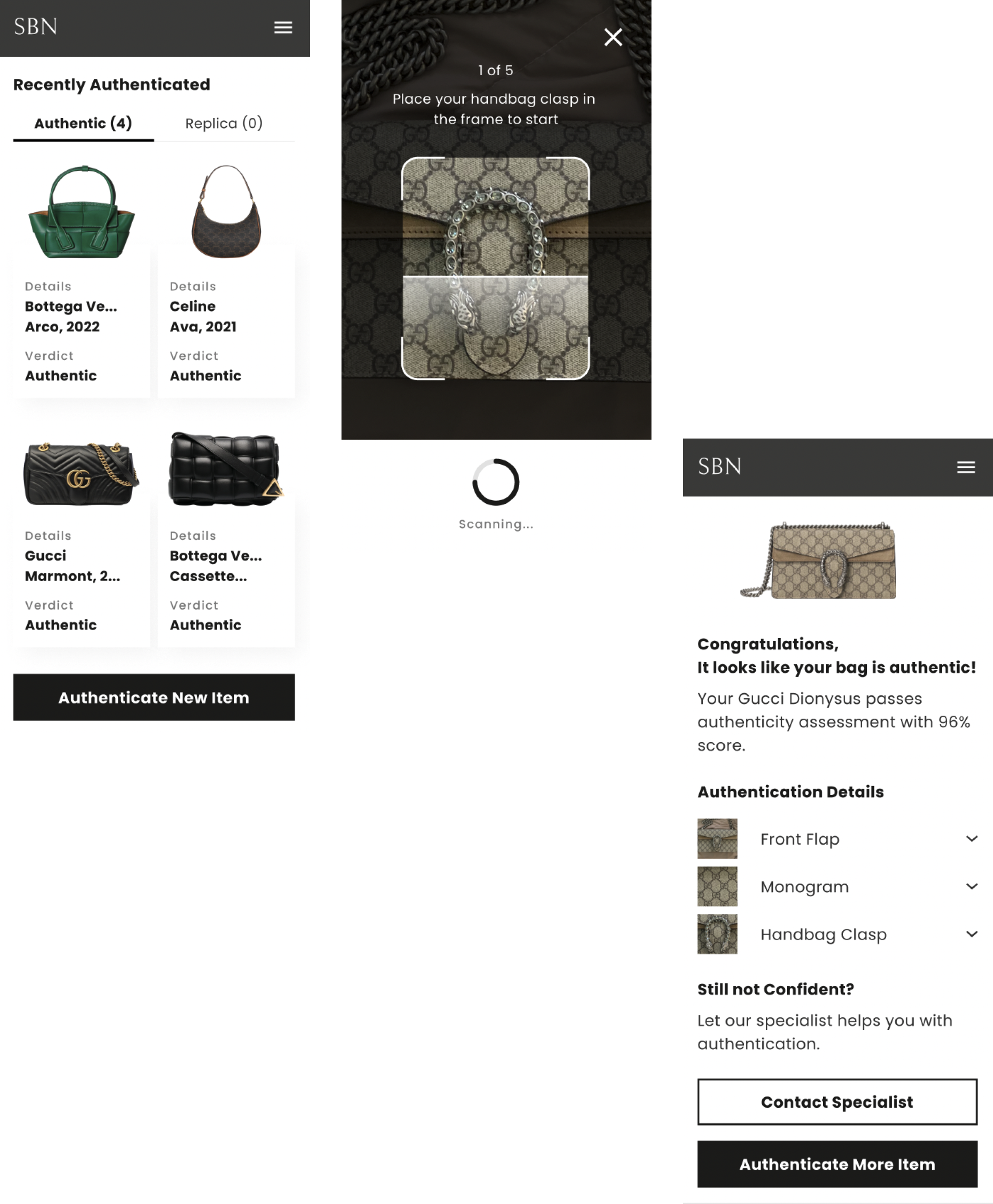 Authenticity Checker is introduced to address user's key concerns of buying a counterfeit product. By integrating technology such as image recognition, and AI (Artificial Intelligence), the system will verify the authenticity of luxury products from the images taken by users.