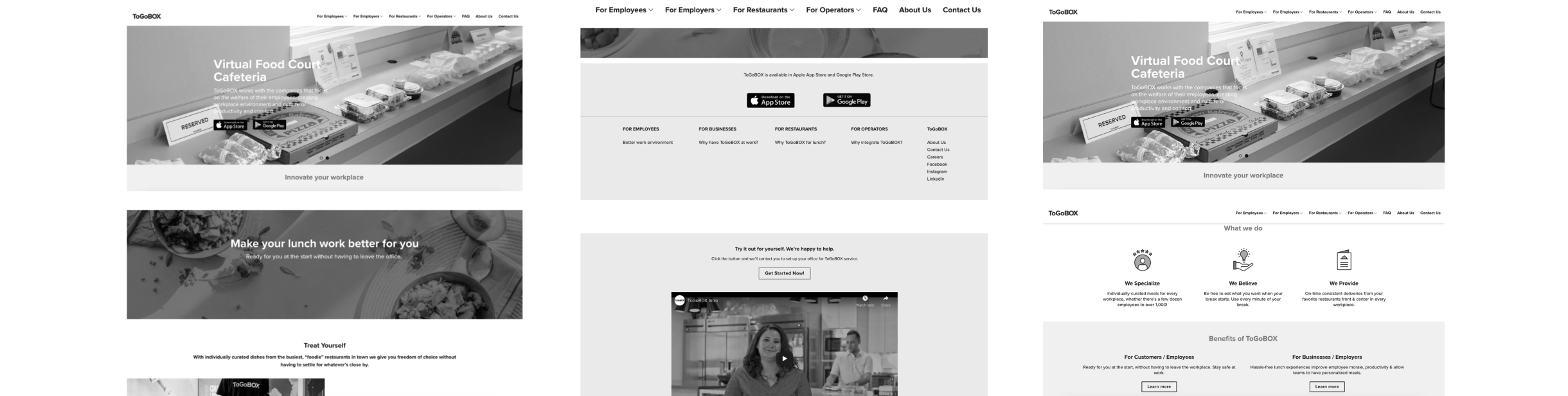 Having it’s own site established long time ago, ToGoBOX would like to revamp the site experience and re-invision it’s interface. Within a small team of designer, developer, and project manager, I redesigned the existing website structure to improve user flow as well as freshen the interface of the site to better tells communicate brand and business stories.