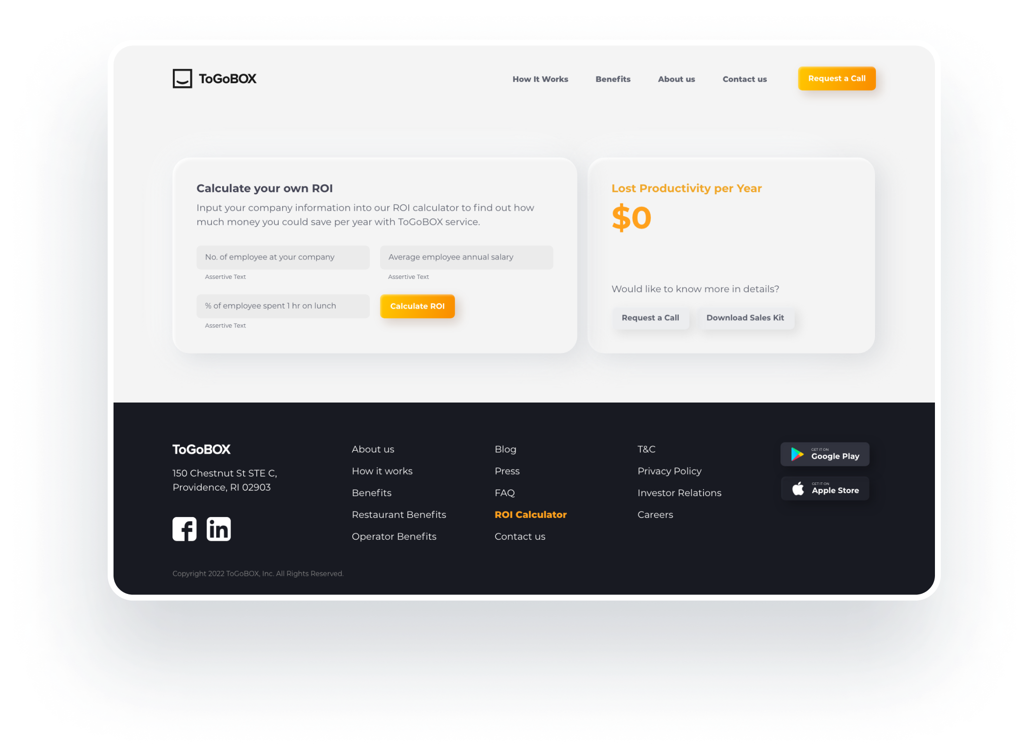 ROI Calculator allows the potential customers to calculate an initial cost without the need to contact ToGoBOX staffs via email or call.